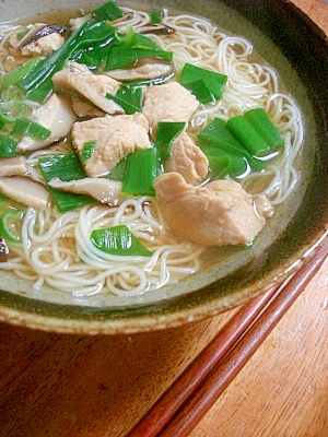 優しい味 鶏ネギ素麺 にゅうめん レシピ 作り方 By Mieuxkanon クックパッド