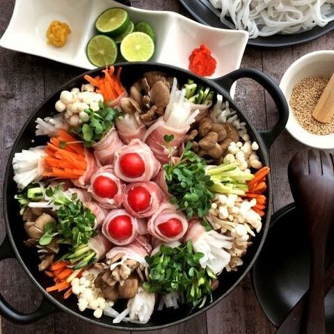 なんてカラフル 7種の野菜の豚バラ肉巻き鍋 暮らしニスタ